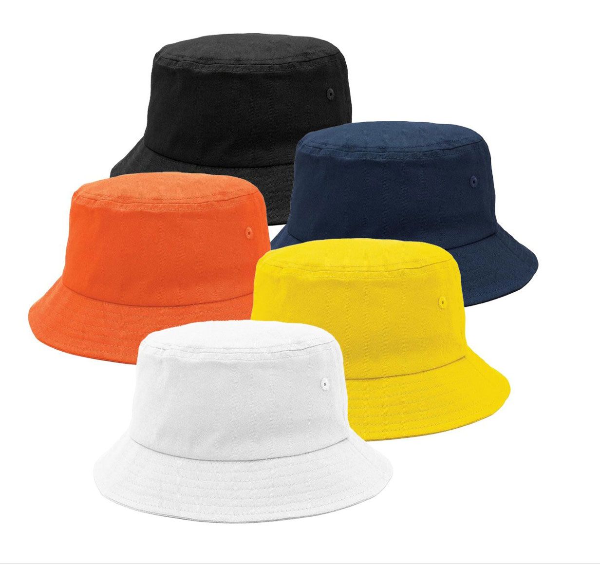 Trendy bucket hats with wide brims for sun protection, festivals, and fashion-forward promotions.